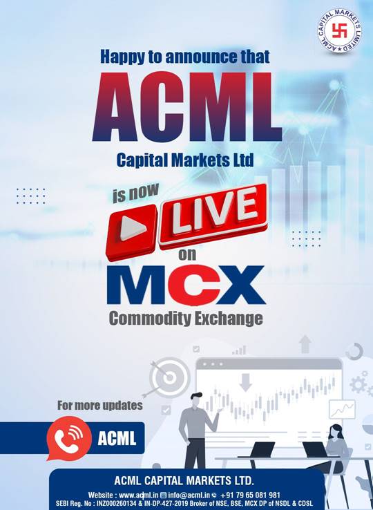 ACML CAPITAL MARKETS LIMITED (ACML) is a company established and promoted by the then Ahmedabad Stock Exchange Limited (ASEL) (now; ASEL Financial Services Limited) in the year 2000. ACML is a professionally managed Trading & Clearing Member in the Cash, Currency and F&O segment of BSE Ltd. (BSE:293), Cash, F&O and Currency segment of National Stock Exchange of India Limited (NSE:11074) and Commodity segment with MCX Limited (MCX:57145). ACML is a Depository Participant of National Securities Depository Limited (NSDL: IN302461) and Central Depository Services (India) Limited (CDSL: 15200).